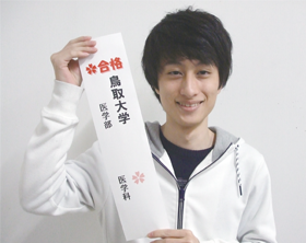 私は松江予備校での一年間の浪人生活をへて、鳥取大学医学部医学科に合格しました。元々理系科目が苦手な私は、現役の頃から絶対に数学と理科を避けては通れない医学科の試験に苦しんでいました。そんな私が目標としていた医学科に合格できたのは、松江予備校の先生方が基礎からきちんと学び直す事を徹底的にサポートしてくださったおかげだと思います。現役で失敗した時、「入試問題が解けないのは経験値が足りないからだ。基礎はある程度身に付いているはずだから、難易度の高い応用問題をとにかくたくさん解く事が合格の近道だ」と考えていました。ところが、松江予備校で基礎を大切にした授業を聴くうち、いかに自分の“基礎力”に穴があるかを痛感しました。浪人の一年間は、想像以上に短いです。大事なことは、いろいろな参考書や問題集に手をださないこと。松江予備校の先生方が厳選して下さったテキストの問題を完璧に解けるようになるまで繰り返し解き直した結果、効率的に“使える学力”を身につけることが出来ました。松江予備校の先生方を信じて素直に勉強を続ければ合格に必要な力は着実に付きます。また、分からないことがあったら、躊躇わず先生に聞きに行きましょう。松江予備校の職員室は皆さんの想像よりずっと入りやすいです。些細なことでも勇気を出して質問してみて下さい。